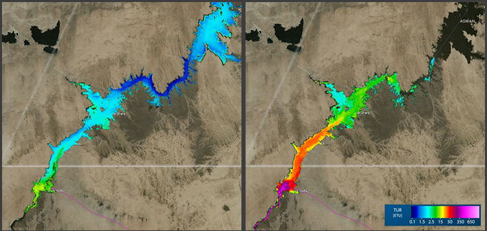 Distibution de la turbidité, réservoir du Nil et d'Assouan, les 17 janvier et 20 août 2016
