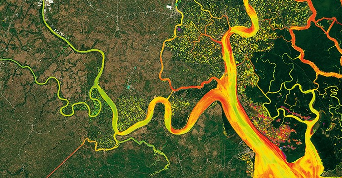 Enjeux : L’étude des eaux de surface continentales revêt une double importance puisqu’elles représentent la plus grande partie de la ressource hydrique disponible pour nos sociétés et que la qualité de ces eaux permet de tracer de nombreux processus à l’œuvre au sein des bassins versants (érosion, changements d’occupation des sols, pollutions diffuses et ponctuelles, variations climatiques). L’utilisation de la télédétection pour le suivi de paramètres de qualité des eaux comme la présence de matière organique et minérale sous forme dissoute ou particulaire est opérée de manière routinière sur les eaux océaniques depuis de nombreuses années. De nombreux travaux de recherche ont été conduits pour adresser la complexité des eaux continentales. Les eaux hyperturbides, correspondant à la majorité des eaux continentales - rivières, lacs, retenues de barrages, estuaires - sont un sujet d’étude majeur par télédétection pour les années à venir.