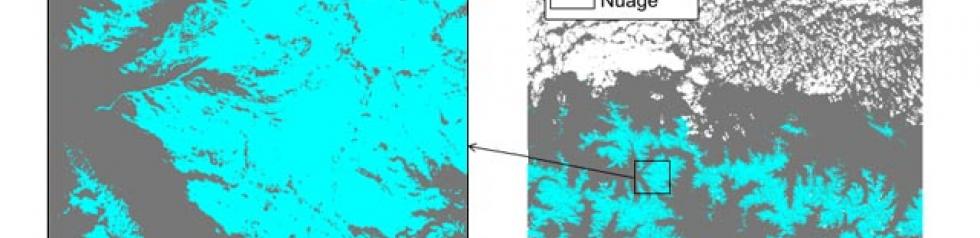 Le produit neige disponible est celui distribué par le pôle de données et de services surfaces continentales Theia (créé fin 2012 par 9 institutions publiques françaises impliquées dans l’observation de la Terre et les sciences de l’environnement - www.theia-land.fr) . Le produit indique la présence ou l’absence de neige à la surface terrestre tous les cinq jours en l’absence de nuages. C’est un produit à 20 m de résolution généré à partir d'images Sentinelle 2 de niveau 2A produites par Theia et n'est donc disponible que sur les zones couvertes par la production de Theia identifiées en rouge sur la carte ci-dessous.